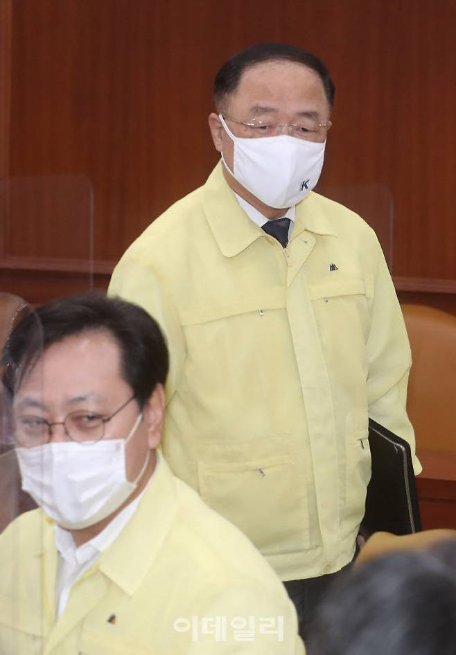 [이데일리 김태형 기자] 홍남기 경제부총리 겸 기획재정부 장관이 24일 오전 서울 종로구 정부서울청사에서 열린 코로나19 중앙재난안전대책본부(중대본) 회의에 참석하고 있다.