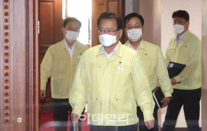 [이데일리 김태형 기자] 김부겸 국무총리가 24일 오전 서울 종로구 정부서울청사에서 열린 코로나19 중앙재난안전대책본부(중대본) 회의에 참석하고 있다.