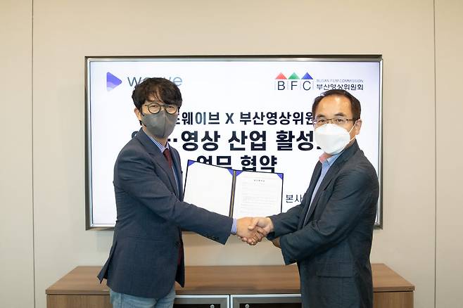온라인동영상서비스(OTT) 웨이브를 운영하는 콘텐츠웨이브가 부산영상위원회와 '영화·영상 산업 발전 업무협약'을 체결했다.