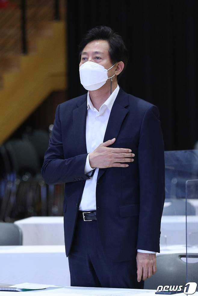 (서울=뉴스1) 신웅수 기자 = 오세훈 서울시장이 24일 오전 서울시청에서 열린 2021년 하반기 폭력 예방 통합 교육에서 인사말을 하고 있다.
