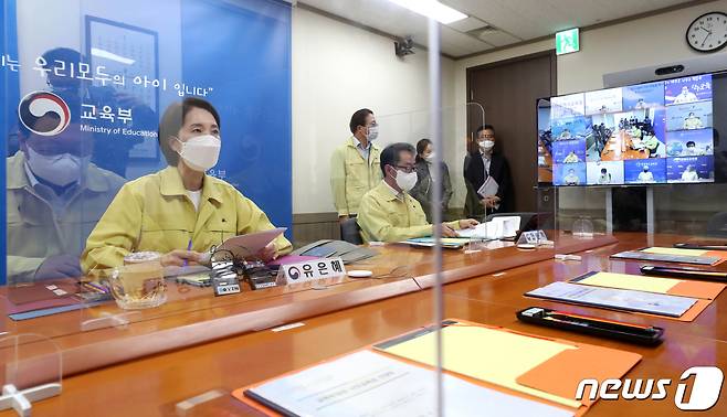 (서울=뉴스1) 민경석 기자 = 유은혜 사회부총리 겸 교육부 장관이 24일 오전 서울 종로구 정부서울청사에서 열린 '전국 시도교육감 간담회'에서 모두발언을 하고 있다.