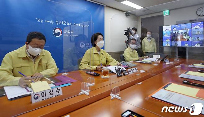 (서울=뉴스1) 민경석 기자 = 유은혜 사회부총리 겸 교육부 장관이 24일 오전 서울 종로구 정부서울청사에서 열린 '전국 시도교육감 간담회'에서 모두발언을 하고 있다.