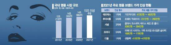 이 같은 소비자들의 명품 사랑에 국내 명품시장 규모는 매년 확대되고 있다. 시장조사업체 유로모니터에 따르면 지난해 국내 명품시장 규모는 14조9964억원으로 2015년 12조2100억원에 비해 약 22% 성장했다. 올해 국내 명품시장은 15조원을 넘어설 것으로 전망된다.