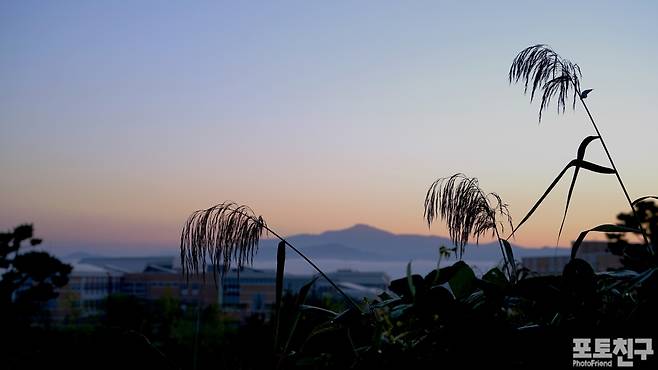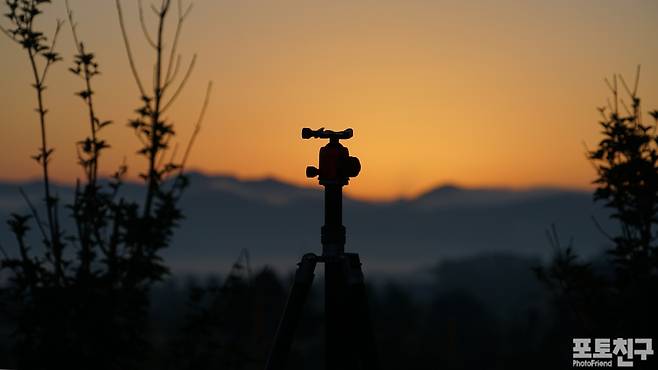 여명을 배경으로 삼각대 모델이 제법 그럴듯합니다.