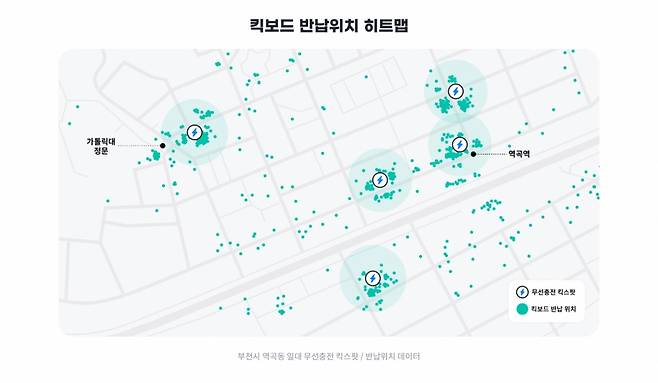 최초 실증 후 약 4개월간 킥고잉 위치 데이터를 분석한 결과, 무선충전 킥스팟 반경 20m내 약 80%가 무선충전 킥스팟에 반납한 것으로 조사됐다.