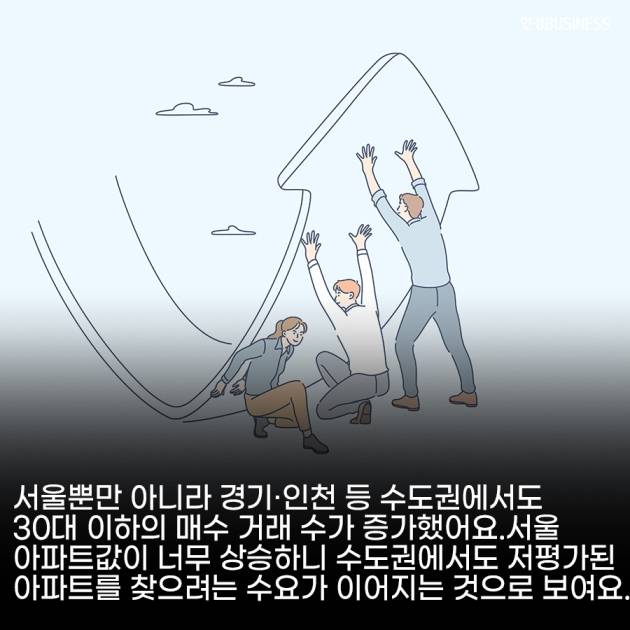 서울뿐만 아니라 경기·인천 등 수도권에서도 30대 이하의 매수 거래 수가 증가했어요.