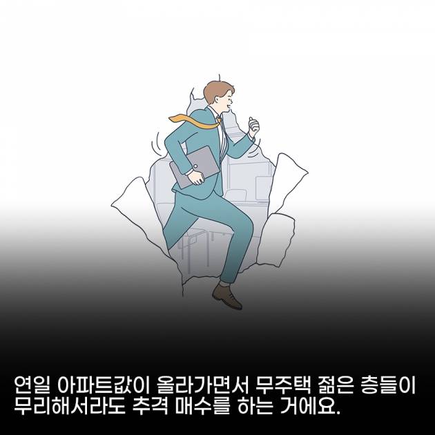 연일 아파트값이 올라가면서 무주택 젊은 층들이 무리해서라도 추격 매수를 하는 거에요.