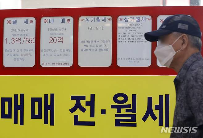 [서울=뉴시스] 고승민 기자 = 아파트값 오름세가 지속되면서 그 여파인 전세난에 이어 월세시장까지 영향을 미치고 있는 것으로 알려진 24일 서울 송파구의 한 공인중개사에 매물 시세가 게시돼 있다. 2021.09.24. kkssmm99@newsis.com