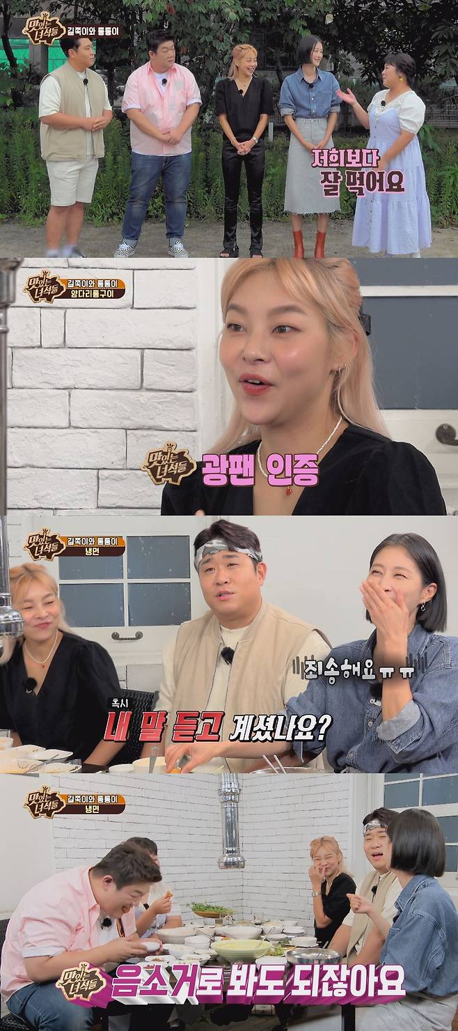 특히 송해나는 "'맛있는 녀석들'의 광팬이다. 다이어트를 할 때 틀어놓고 자기 전까지 본다. 대리만족하는 스타일이다"라고 팬심을 드러내 뚱3을 흐뭇하게 만들기도.