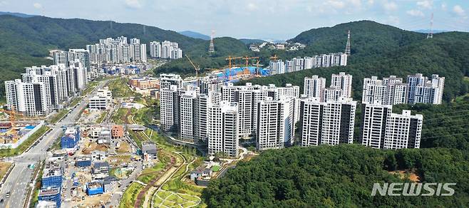 [성남=뉴시스] 김종택기자 = 24일 경기도 성남시 분당구 대장동 개발사업 현장에서 건설 작업이 한창 진행되고 있다. 자산관리업체 화천대유자산관리 등을 둘러싸고 정치권에서 특혜 논란이 거세지자 대장동 개발 의혹과 관련해 검경이 수사에 착수했다. 2021.09.24.