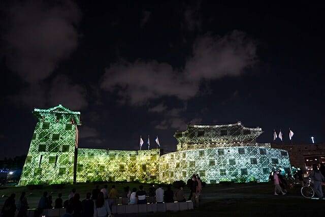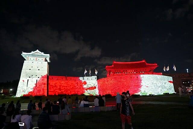 화려한 2D, 3D CG로 연출한 미디어파사드(프로젝션맵핑), 화서문 일대의 특수조명과 야간경관조명은 예술경관이 돼 관광객과 시민들에게 수원화성을 새로운 시선으로 바라보는 경험을 선사한다.