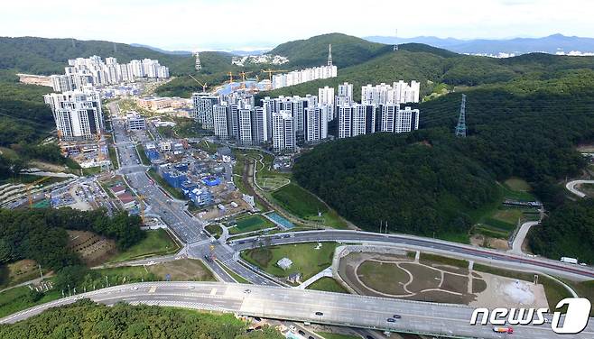 (성남=뉴스1) 김영운 기자 = 이재명 경기도지사가 성남시장 재직 시절 진행한 대장동 개발사업 관련 특혜 의혹과 논란이 커지고 있다. 사진은 24일 오후 경기도 성남시 분당구 대장동 개발사업 현장의 모습. 2021.9.24/뉴스1