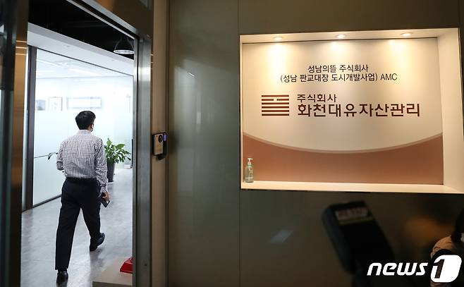 (성남=뉴스1) 김영운 기자 = 24일 오전 경기도 성남시 분당구 대장동 개발 사업 특혜 의혹을 받고 있는 화천대유 자산관리 사무실 입구의 모습. 2021.9.24/뉴스1