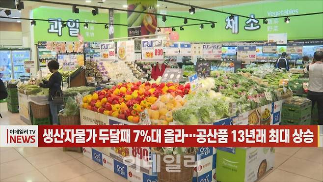 [이데일리N] 생산자물가 두달째 7%대 올라..공산품 13년래 최대 상승