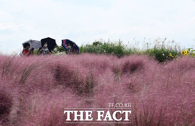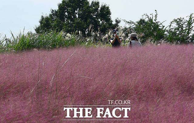 [더팩트ㅣ이동률 기자] 완연한 가을 날씨를 보인 24일 오후 서울 마포구 하늘공원을 찾은 시민들이 핑크뮬리를 보며 가을을 만끽하고 있다.
