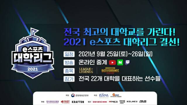 문화체육관광부가 주최하고 한국e스포츠협회가 주관하는 2021 e스포츠 대학리그는 전국 단위의 대학 e스포츠 리그로, 대학 e스포츠 활성화를 바탕으로 아마추어 e스포츠 활성화와 e스포츠 산업 기반 조성을 목표로 하며 올해 2회를 맞았다.