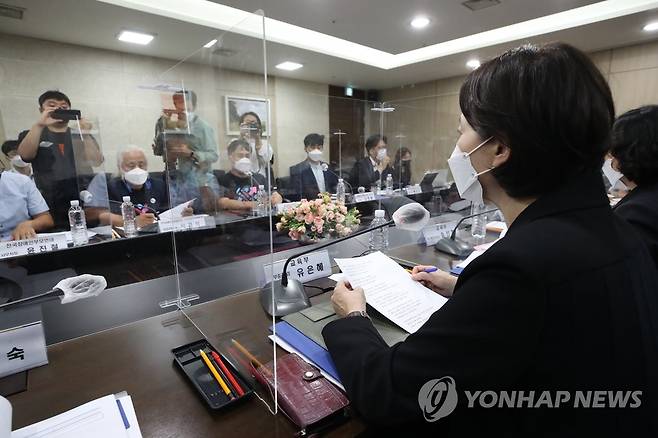 (서울=연합뉴스) 강민지 기자 = 유은혜 부총리 겸 교육부 장관이 24일 오후 서울 영등포구 한국교육시설안전원 대회의실에서 열린 '장애인교육권 제고를 위한 교육부-장애인단체 간담회'에서 발언하고 있다. 2021.9.24