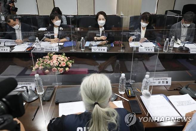 (서울=연합뉴스) 강민지 기자 = 유은혜 부총리 겸 교육부 장관이 24일 서울 영등포구 한국교육시설안전원 대회의실에서 열린 '장애인교육권 제고를 위한 교육부-장애인단체 간담회'에서 인사말을 하고 있다. 2021.9.24