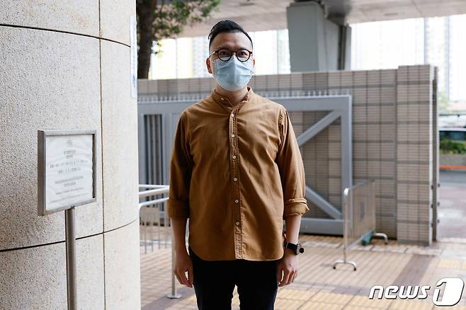 (홍콩 로이터=뉴스1) 금준혁 기자 = 홍콩 국가보안법상 내란음모 혐의를 받는 47명의 민주화 운동가 호카이밍이 웨스트카오룽 치안법원에 도착했다.