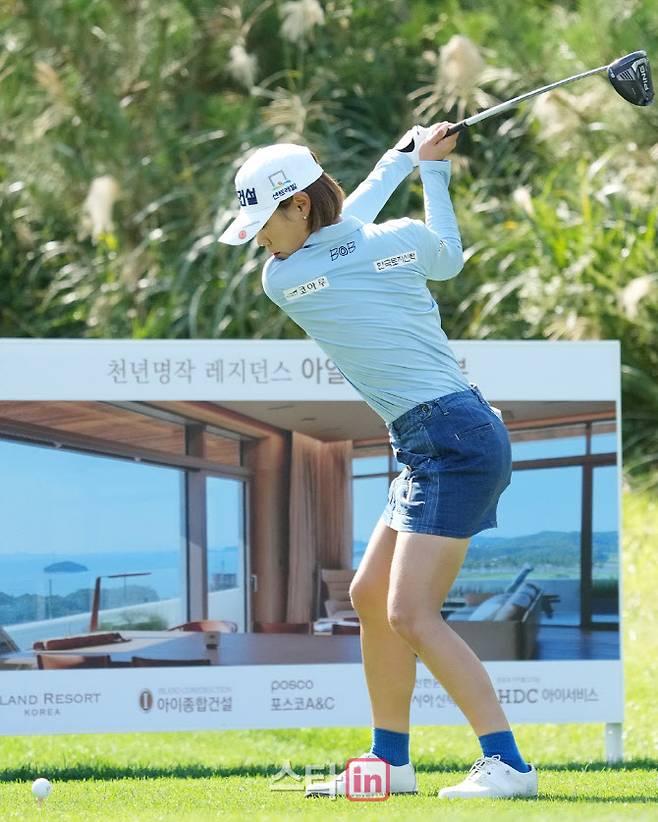 [이데일리 골프in(안산)=조원범 기자]24일 경기도 안산시 대부도에 위치한 아일랜드CC(파72.6613야드)에서 '엘크루-TV조선 프로 셀러브리티 2021'(총상금6억원,우승상금1억8백만원)1라운드가 열렸다.박주영이 1번홀에서 경기를 하고 있다.