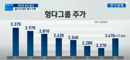 홍콩증시에 상장돼 있는 중국 헝다그룹의 주가를 보시겠습니다.