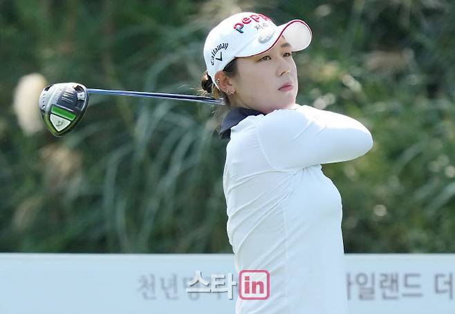 [이데일리 골프in(안산)=조원범 기자]24일 경기도 안산시 대부도에 위치한 아일랜드CC(파72.6613야드)에서 '엘크루-TV조선 프로 셀러브리티 2021'(총상금6억원,우승상금1억8백만원)1라운드가 열렸다.강예린이 1번홀에서 경기를 하고 있다.