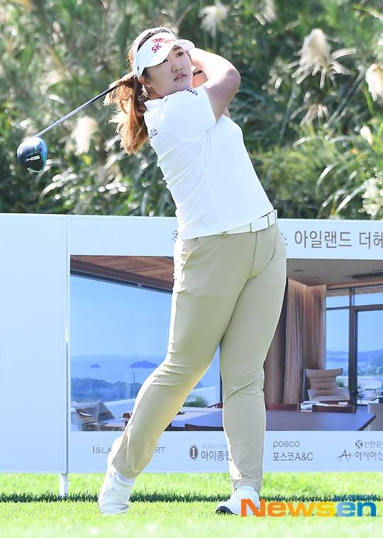 한편, 김지현은 8번 홀(파3)에서 자신의 투어 3번째 홀인원을 성공시켰다. 이글(홀인원) 1개와 버디 3개, 보기 1개를 묶어 4언더파를 작성했다. 단독 선두 유해란에 2타 차 공동 2위다.
