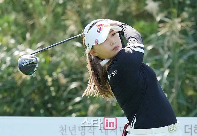 [이데일리 골프in(안산)=조원범 기자]24일 경기도 안산시 대부도에 위치한 아일랜드CC(파72.6613야드)에서 '엘크루-TV조선 프로 셀러브리티 2021'(총상금6억원,우승상금1억8백만원)1라운드가 열렸다.김지영이 1번홀에서 경기를 하고 있다.