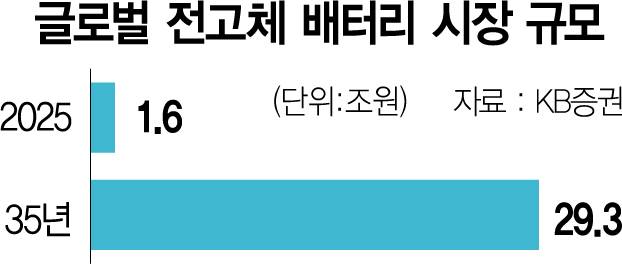 KB증권에 따르면 글로벌 전고체 배터리 시장 규모는 2025년 1조 6,000억 원에서 2035년 29조 3,000억 원으로 10년간 18배 급성장할 것으로 전망된다. 일각에서는 전고체 배터리 양산이 시작되면 시장의 게임체인저로 떠오르며 리튬이온을 비롯한 기존 배터리를 대체할 것이라는 관측을 내놓는다. 최근 들어 리튬이온 배터리를 탑재한 전기차 화재로 안전성 우려가 불거지고 있어서다. 하지만 비용 부담으로 시장 진입이 예상보다 더딜 것이라는 지적도 있다. 배터리업계의 한 관계자는 “2020년대 중반부터 전고체 배터리가 양산되기 시작하더라도 다른 종류의 배터리에 비해 가격이 상당히 높을 것”이라며 “가격 부담이 낮춰지기 전까지 시장 주도권을 잡기는 어려울 것”이라고 내다봤다.