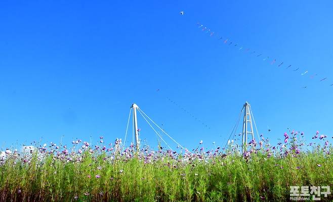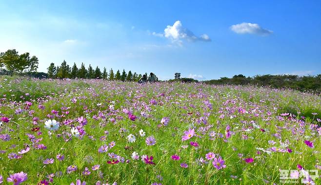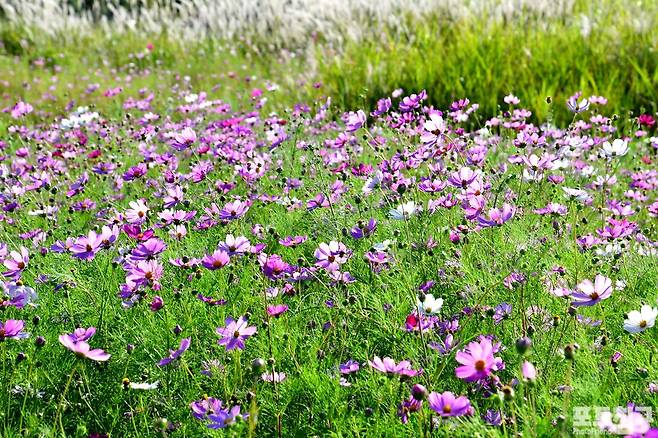 시흥갯골생태공원에 코스모스가 핀 풍경입니다.