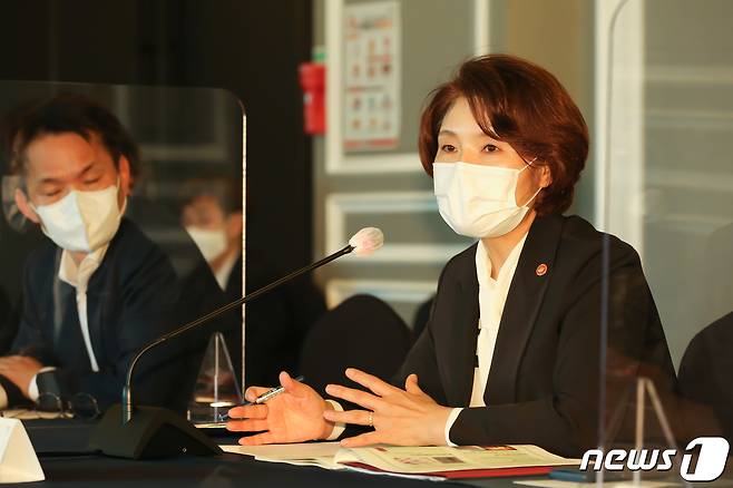(서울=뉴스1) = 한정애 환경부 장관이 24일 서울 영등포구 켄싱턴호텔에서 열린 ‘제4기 민·관환경정책협의회 위촉식 및 1차 회의’에 참석해 발언하고 있다.(환경부 제공) 2021.9.4/뉴스1