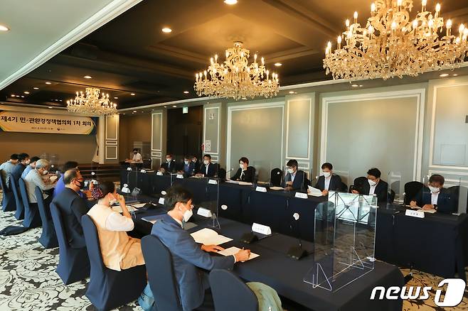(서울=뉴스1) = 한정애 환경부 장관이 24일 서울 영등포구 켄싱턴호텔에서 열린 ‘제4기 민·관환경정책협의회 위촉식 및 1차 회의’에 참석해 발언하고 있다.(환경부 제공) 2021.9.4/뉴스1