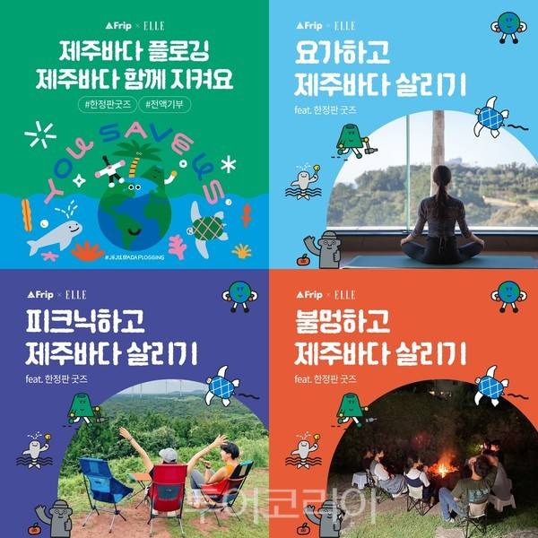 인증 기간은 10월 11일부터 31일까지다. 필수 해시태그(#제주바다플로깅, #JejuBadaPlogging #프립하자)와 엘르에서 제작한 GIF 스티커를 함께 올리면 된다. 굿즈 키트 판매 수익은 제주바다 정화활동을 진행하는 친환경 단체 '사단법인 세이브제주바다'에 전액 기부된다.