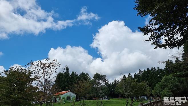 파란 하늘과 구름이 조화를 이룬 모습이 멋있어서 담았습니다.