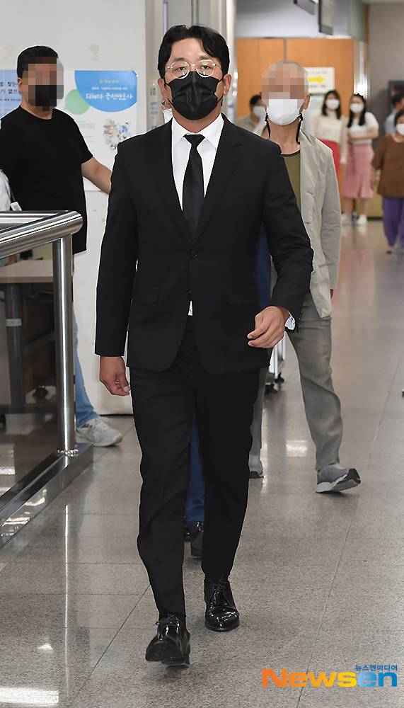 배우 하정우가 지난 9월 14일 오후 프로포폴 불법 투약 혐의(마약류관리에관한법률위반)에 대한 선고 공판을 위해 서울 서초구 서울중앙지방법원으로 출석하고 있다.
