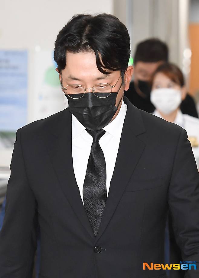 배우 하정우가 지난 9월 14일 오후 프로포폴 불법 투약 혐의(마약류관리에관한법률위반)에 대한 선고 공판을 위해 서울 서초구 서울중앙지방법원으로 출석하고 있다.