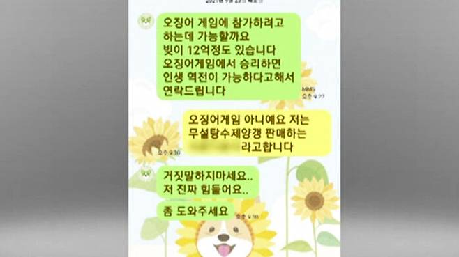 [김길영/번호 노출 피해자 : 자기 (빚이) 12억이 있으니 역전할 수 있도록 자기를 정말 도와달라고, 오징어게임에 참여하고 싶다고.]