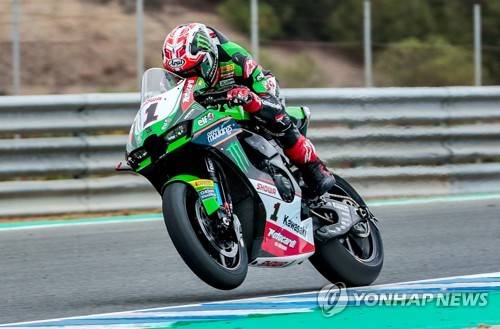 epa09485364 British rider Jonathan Rea of Kawasaki Racing Team in action during a free training session for the Spanish Round of the FIM Superbike World Championship held at Jerez-Angel Nieto race track in Jerez, Andalusia, Spain, 24 September 2021. The race will take place on 25-26 September 2021. EPA/ROMAN RIOS