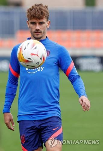 epa09485453 A handout picture provided by Atletico Madrid shows French striker Antoine Grizmann during a training session at Wanda sports city in Majadahonda, Madrid, Spain, 24 September 2021. Atletico Madrid will face Deportivo Alaves upcoming 25 September in their Spanish LaLiga soccer match. EPA/atleticodemadrid.com HANDOUT **MANDATORY CREDIT** HANDOUT EDITORIAL USE ONLY/NO SALES