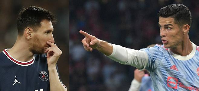 크리스티아누 호날두(맨체스터 유나이티드·사진 오른쪽)가 라이벌 리오넬 메시(파리 생제르맹·PSG·왼쪽)를 제치고 1년 만에 축구선수 수입 전체 1위에 복귀했다.