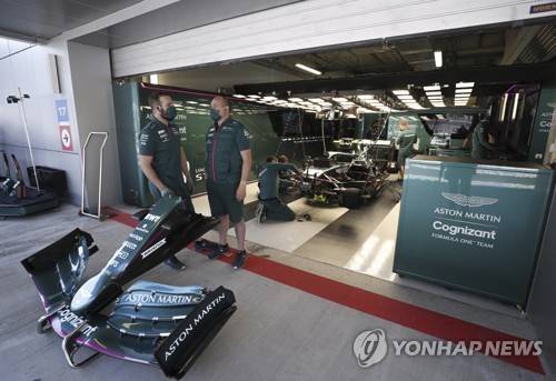 epa09485504 Mechanics work on the car of Canadian Formula One driver Lance Stroll of Aston Martin Cognizant F1 Team during the second practice session of the 2021 Formula One Grand Prix of Russia at the Sochi Autodrom race track in Sochi, Russia, 24 September 2021. The Formula One Grand Prix of Russia will take place on 26 September 2021. EPA/Yuri Kochetkov
