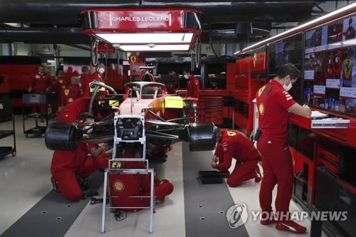 epa09485506 Mechanics work on the car of Monaco's Formula One driver Charles Leclerc of Scuderia Ferrari Mission Winnow during the second practice session of the 2021 Formula One Grand Prix of Russia at the Sochi Autodrom race track in Sochi, Russia, 24 September 2021. The Formula One Grand Prix of Russia will take place on 26 September 2021. EPA/Yuri Kochetkov