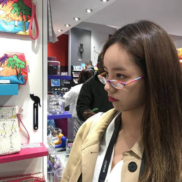 공개된 사진 속 혜리는 독특한 무늬의 뿔테 안경을 쓰고 있는 모습. 독특한 무늬지만 혜리의 완성형 미모로 소화하는 모습을 보였다.