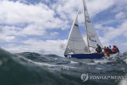 epa09485602 Yacht Kayo races in the Spring Regatta in False Bay, Cape Town, South Africa, 24 September 2021. Hosted by the False Bay Yacht Club the annual Spring Regatta sees some of South Africa's premier offshore racing yachts sailing against each other in the Indian Ocean waters of False Bay. EPA/NIC BOTHMA