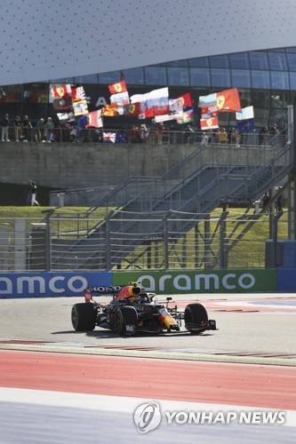 epa09485606 Mexican Formula One driver Sergio Perez of Red Bull Racing in action during the second practice session of the 2021 Formula One Grand Prix of Russia at the Sochi Autodrom race track in Sochi, Russia, 24 September 2021. The Formula One Grand Prix of Russia will take place on 26 September 2021. EPA/Yuri Kochetkov
