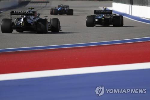 epa09485657 French Formula One driver Pierre Gasly (L) of Scuderia AlphaTauri Honda in action during the second practice session of the 2021 Formula One Grand Prix of Russia at the Sochi Autodrom race track in Sochi, Russia, 24 September 2021. The Formula One Grand Prix of Russia will take place on 26 September 2021. EPA/Yuri Kochetkov