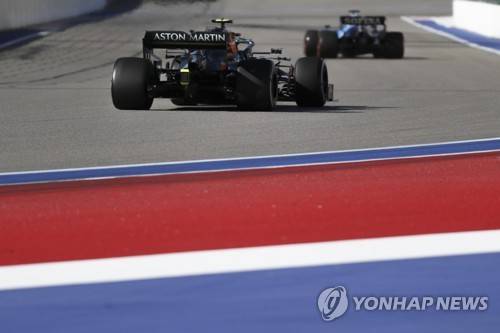 epa09485656 German Formula One driver Sebastian Vettel (L) of Aston Martin Cognizant F1 Team in action during the second practice session of the 2021 Formula One Grand Prix of Russia at the Sochi Autodrom race track in Sochi, Russia, 24 September 2021. The Formula One Grand Prix of Russia will take place on 26 September 2021. EPA/Yuri Kochetkov