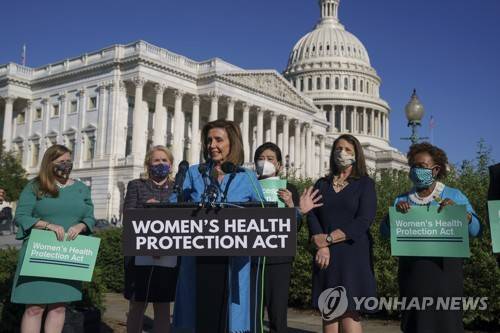 House Speaker Nancy Pelosi, D-Calif., joined from left by Rep. Lizzie Fletcher, D-Texas, Rep. Sylvia Garcia, D-Texas, Rep. Judy Chu, D-Calif., Rep. Diana DeGette, D-Colo., and Rep. Barbara Lee, D-Calif., holds a news conference just before a House vote on legislation aimed at guaranteeing a woman’s right to an abortion, an effort by House Democrats to circumvent a new Texas law that has placed that access under threat, at the Capitol in Washington, Friday, Sept. 24, 2021. (AP Photo/J. Scott Applewhite)