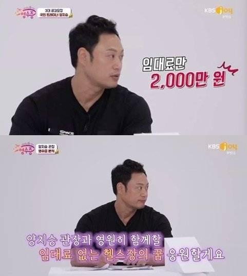 그러나 양치승은 "관리비 다 빼고 임대료만 2000만원대"라며 헬스장에 드는 돈을 언급, 운동화가 몇백 켤레라고도 밝혔다.