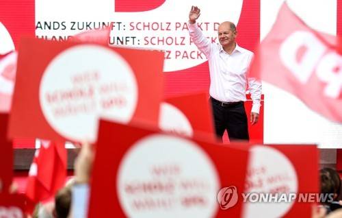 epa09485794 German Minister of Finance and Social Democratic Party (SPD) top candidate for the federal elections Olaf Scholz delivers a speech during an election campaign in Cologne, Germany, 24 September 2021. The election for the 20th German Bundestag will take place on 26 September 2021. EPA/FRIEDEMANN VOGEL